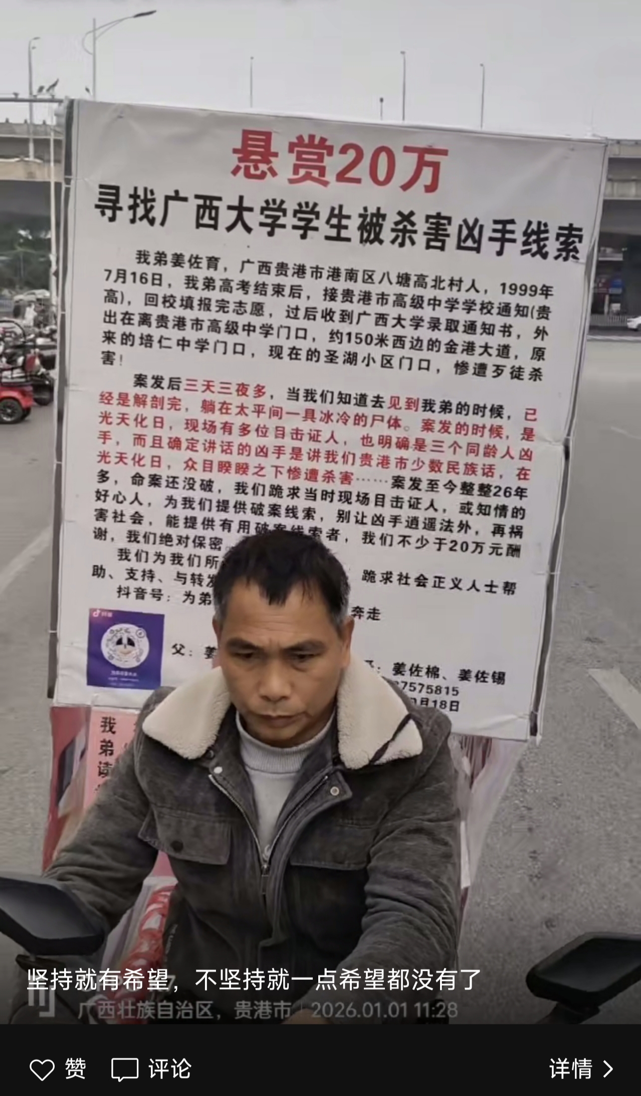 姜佐棉表示,他们家的悬赏金额也从此前的10万元金鑫优配,提高到了现在的20万元。“父母年龄大了,一家人都在等一个结果。”